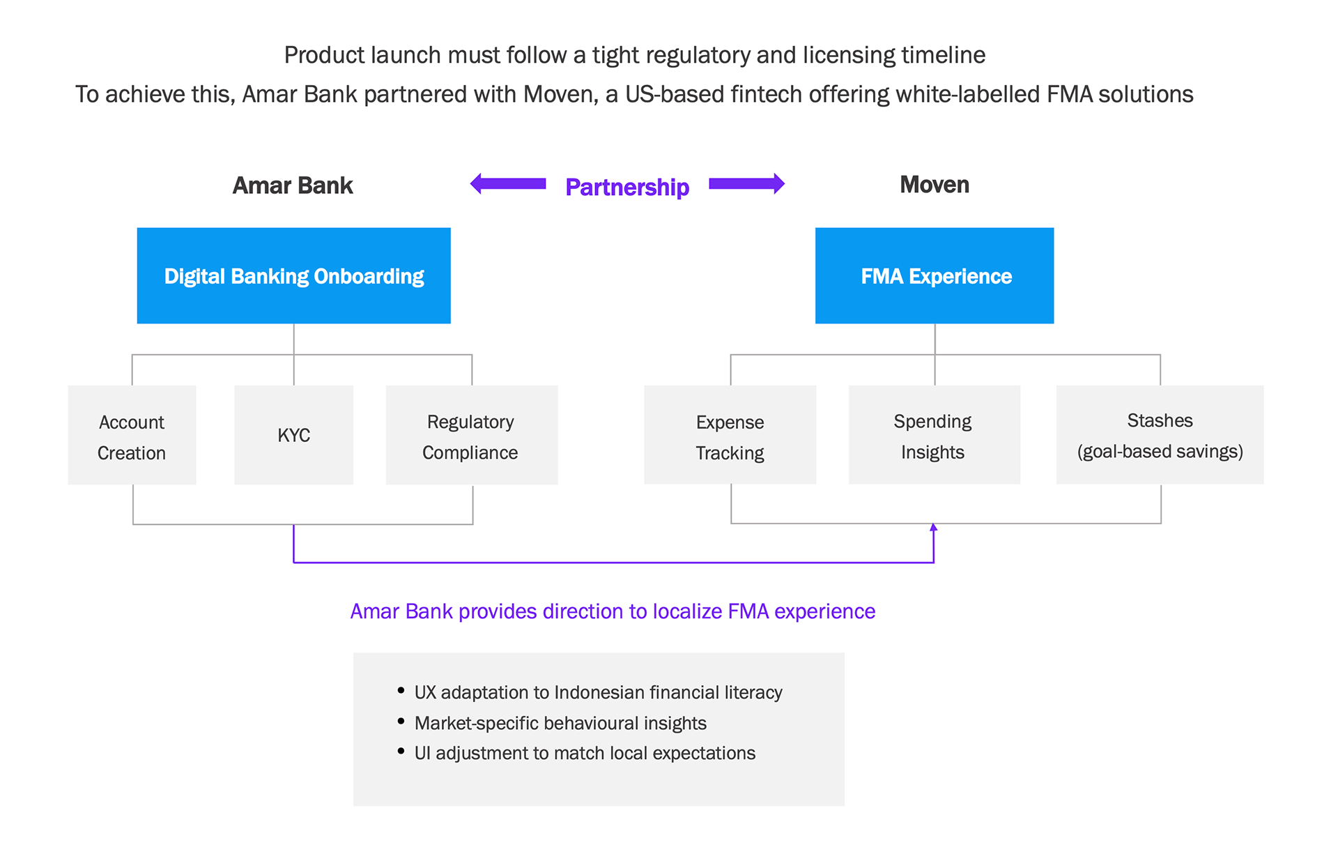 The scheme below shows the relationship between the products – Senyumku digital banking app and Moven's financial management app.