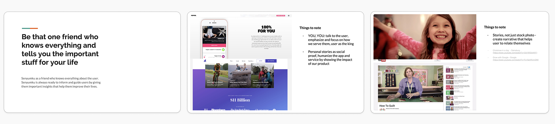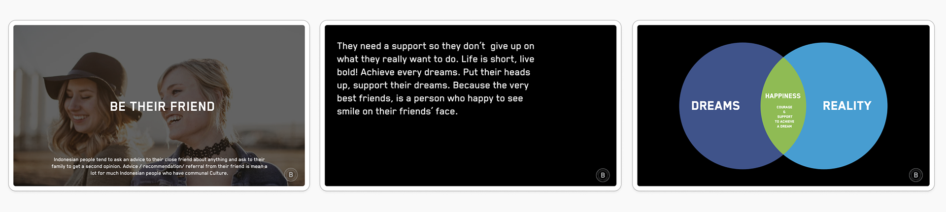 • I advised them to create a brand persona that evokes the image of a trusted advisor who's reliable, wise and approachable. This is to demystify Indonesian millennials' fear and intimidating image of financial products.