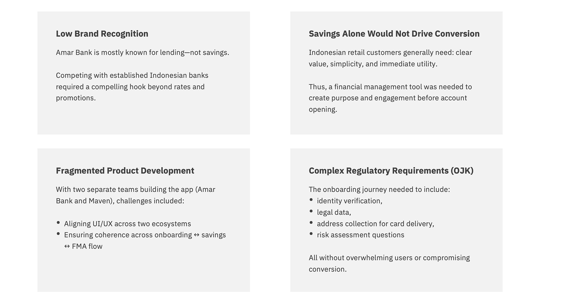 To meet OJK’s accelerated licensing timeline, Amar Bank partnered with Maven, a US-based fintech offering white-labeled digital banking and FMA solutions.