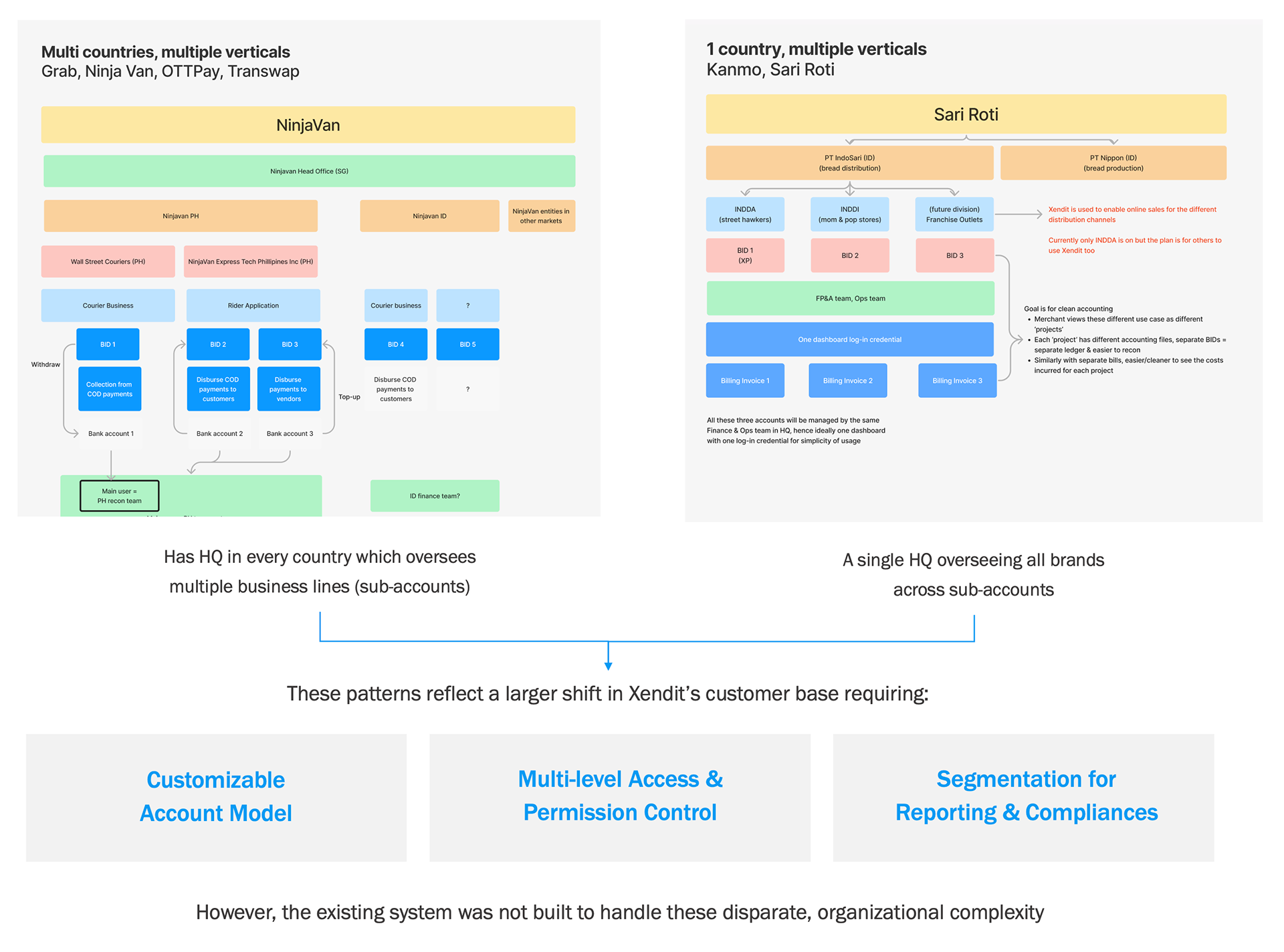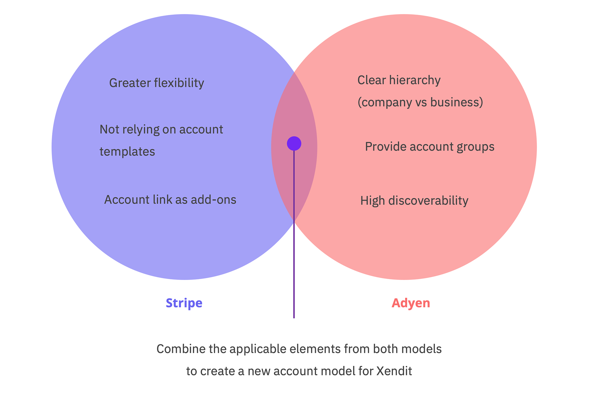 I also analyzed the account structure in other global payment gateways to ideate a new account model applicable to Xendit.