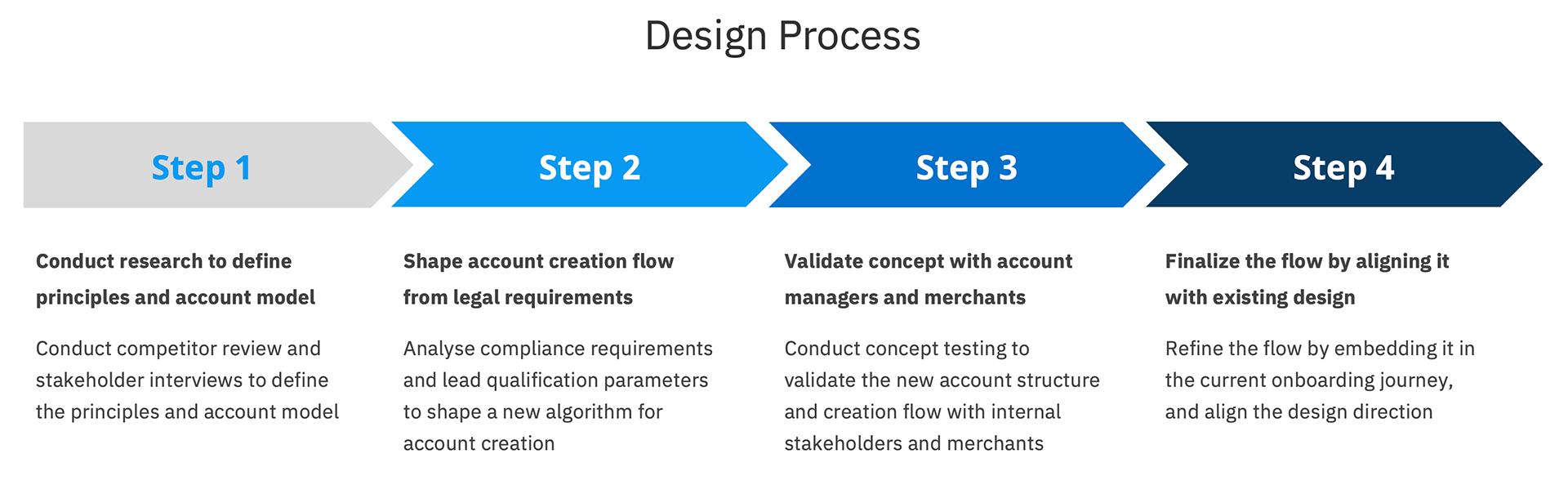 How might we design a scalable account creation system that empowers enterprise merchants to manage their account on their own — while maintaining compliance efficiency?