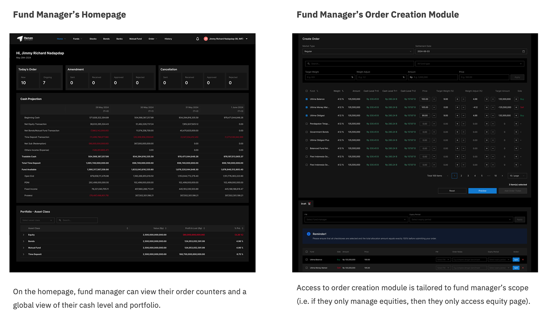 The dashboard can be accessed by both fund manager and dealing teams to ensure orders and updates are trackable in a single platform. However, each team has different level of visibility and control, based on their user role.